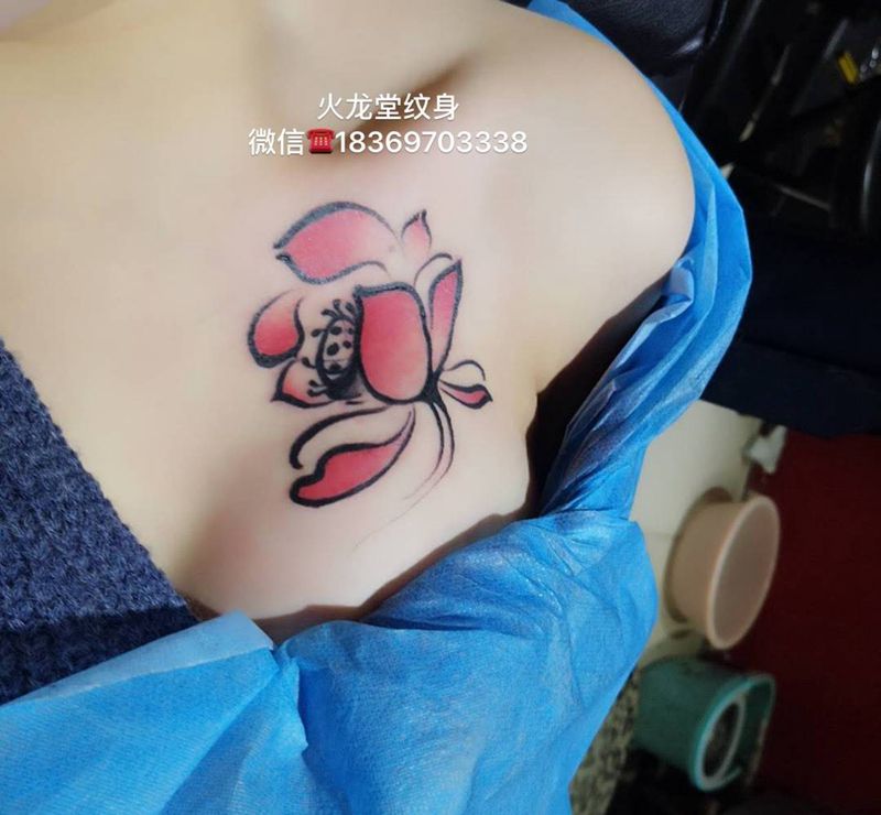 当前位置: 首页 >山东省济宁市纹身店-火龙堂纹身纹身图案>美女前胸莲花纹身图片