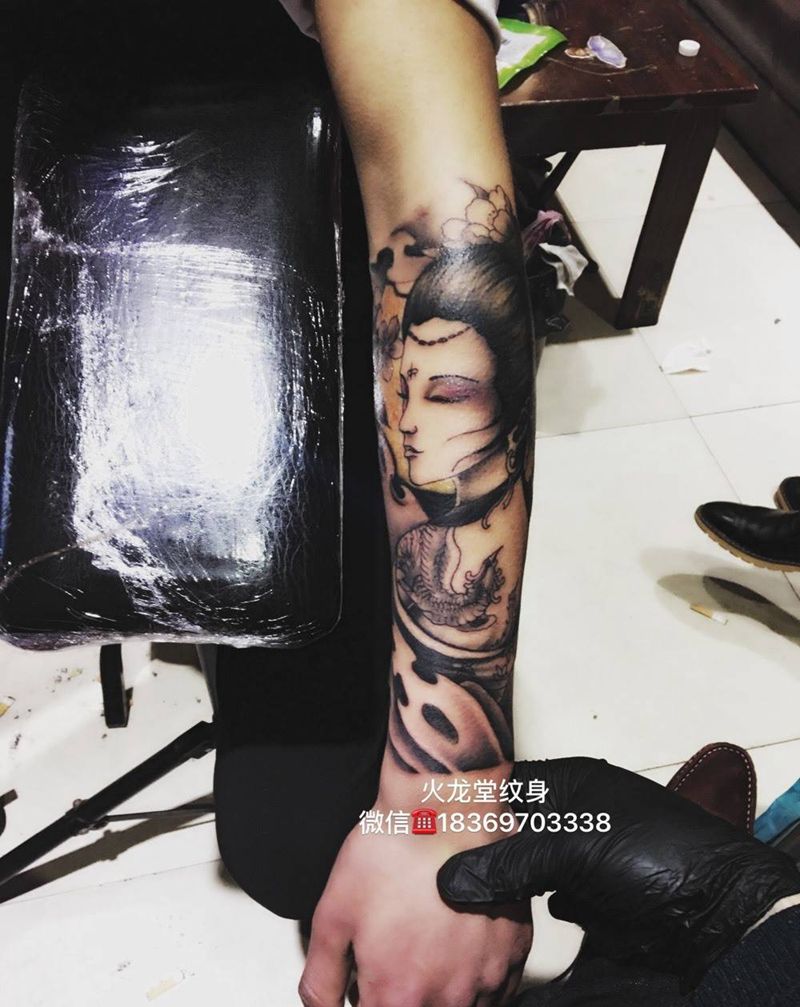 当前位置: 首页 >山东省济宁市纹身店-火龙堂纹身纹身图案>小臂艺妓纹身图片