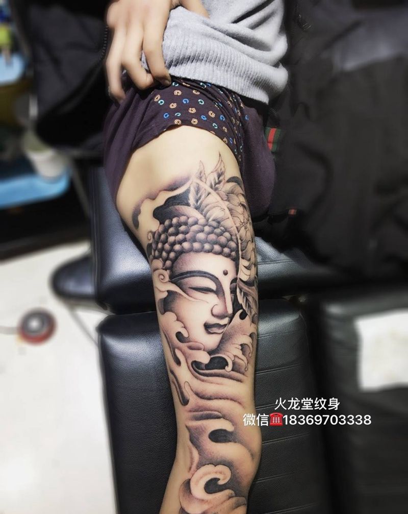 当前位置: 首页 >山东省济宁市纹身店-火龙堂纹身纹身图案>大腿外侧佛头纹身图片