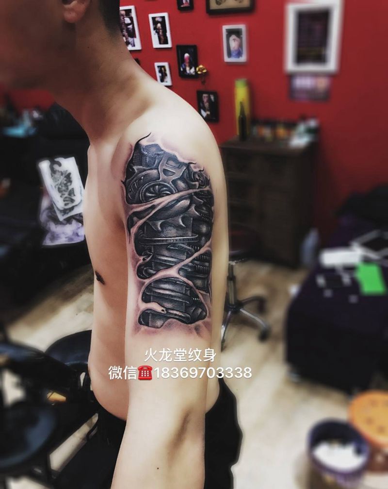 当前位置: 首页 >山东省济宁市纹身店-火龙堂纹身纹身图案>机械臂纹身图片