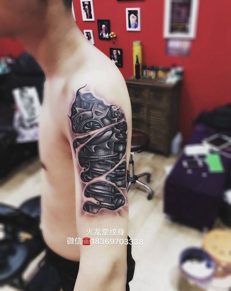 当前位置: 首页 >山东省济宁市纹身店-火龙堂纹身纹身图案>机械臂纹身图片