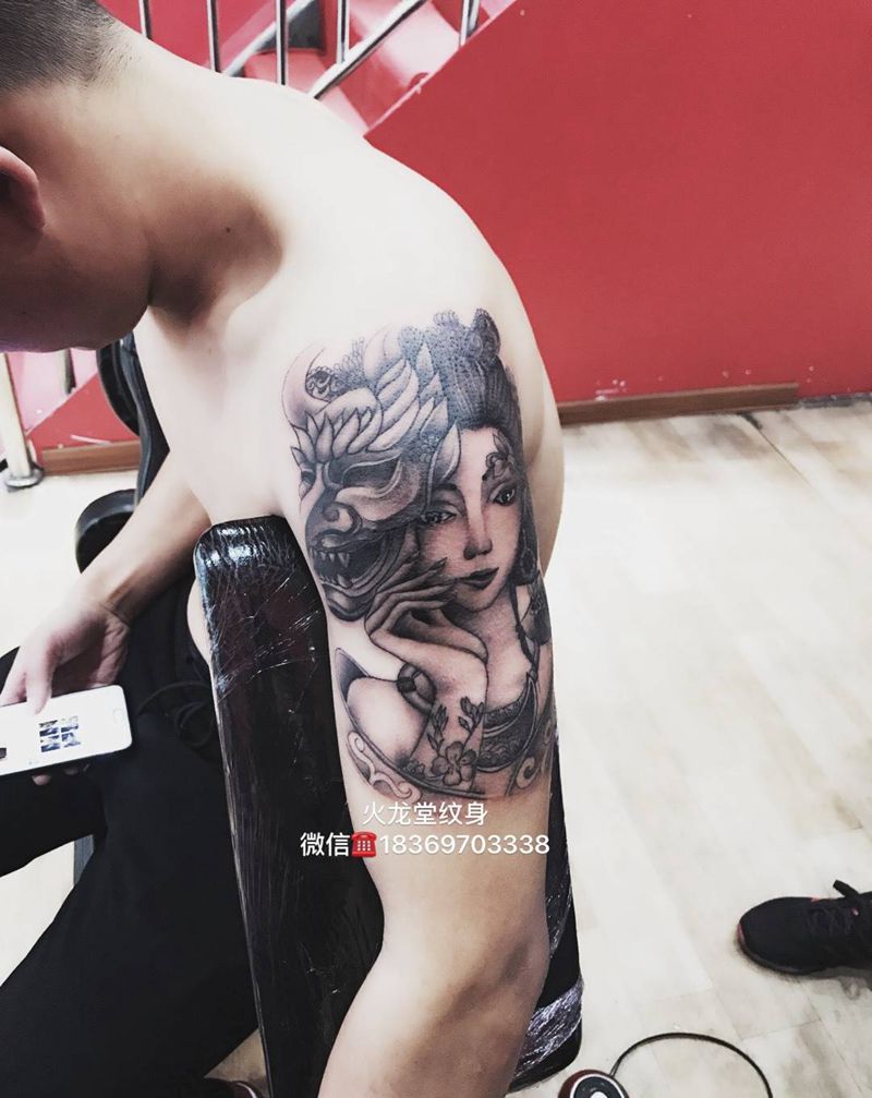 当前位置: 首页 >山东省济宁市纹身店-火龙堂纹身纹身图案>大臂艺妓纹身图片