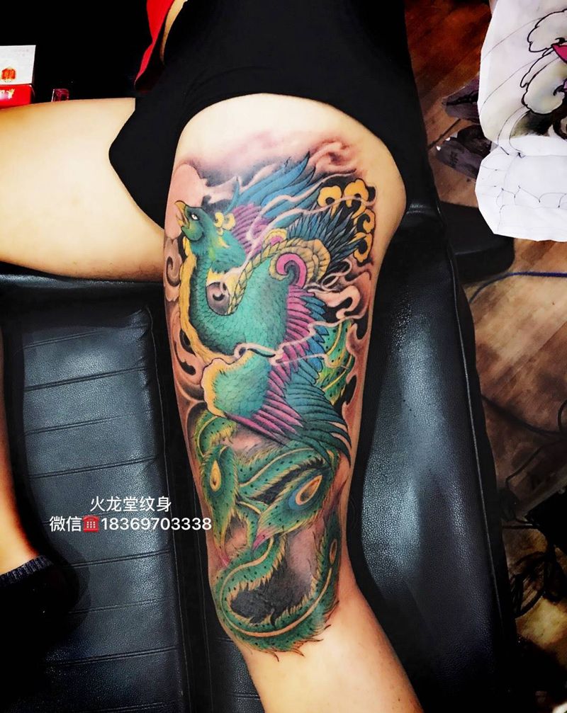 当前位置: 首页 >山东省济宁市纹身店-火龙堂纹身纹身图案>彩色凤凰纹身图片