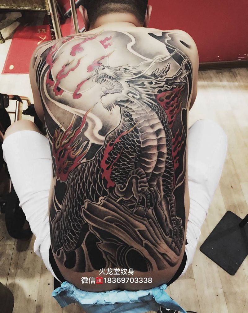 • T云龙九郎纹身图片_背部老传统云龙九郎纹身图案