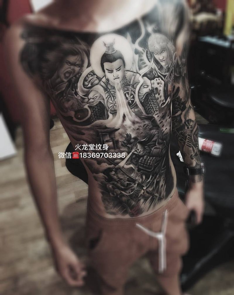 黑灰满背纹身图案