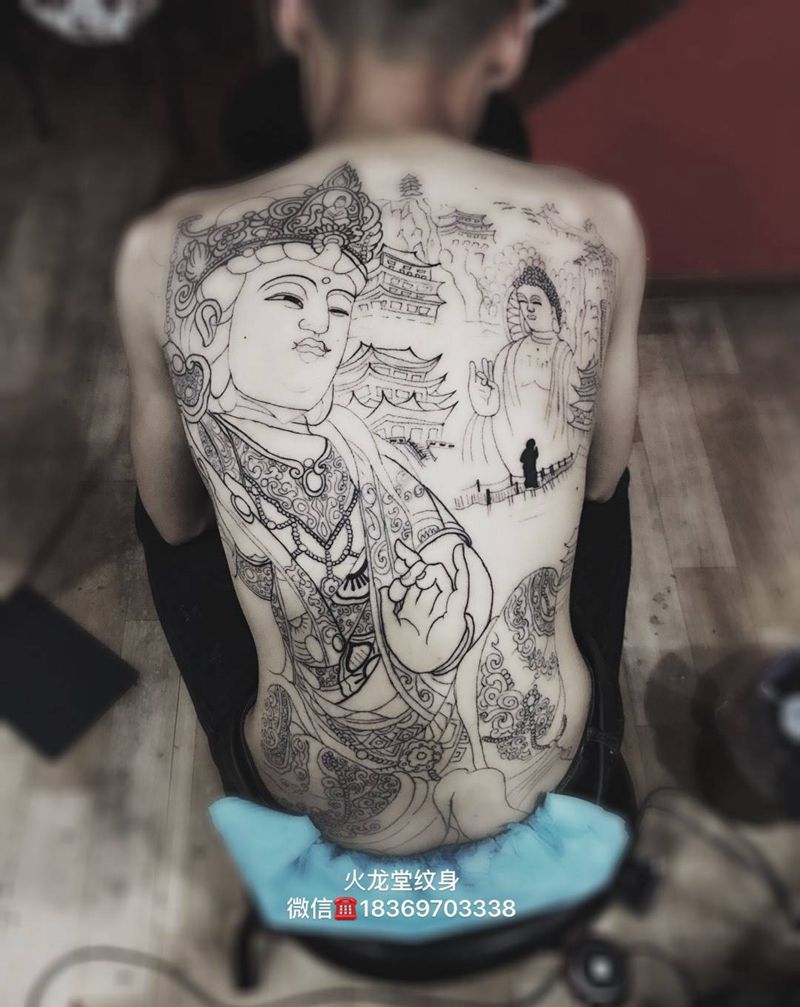 满背半成品纹身图片