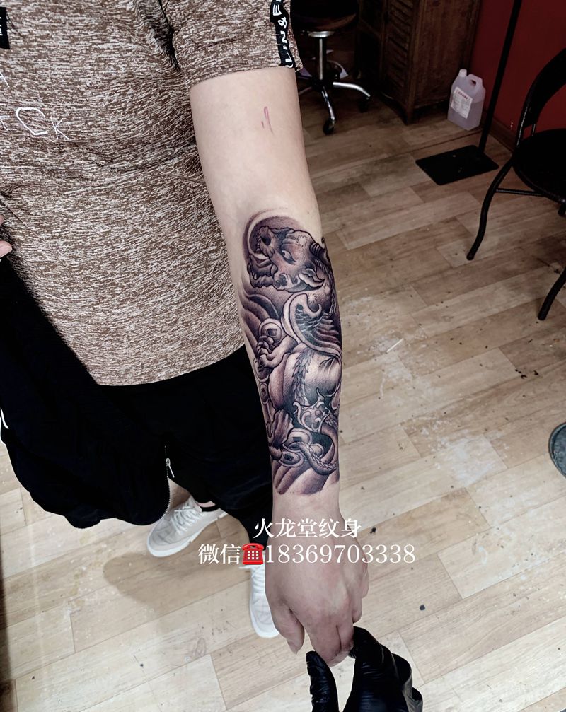 当前位置: 首页 >山东省济宁市纹身店-火龙堂纹身纹身图案>貔貅纹身图片_手臂新传统老传统纹身图案