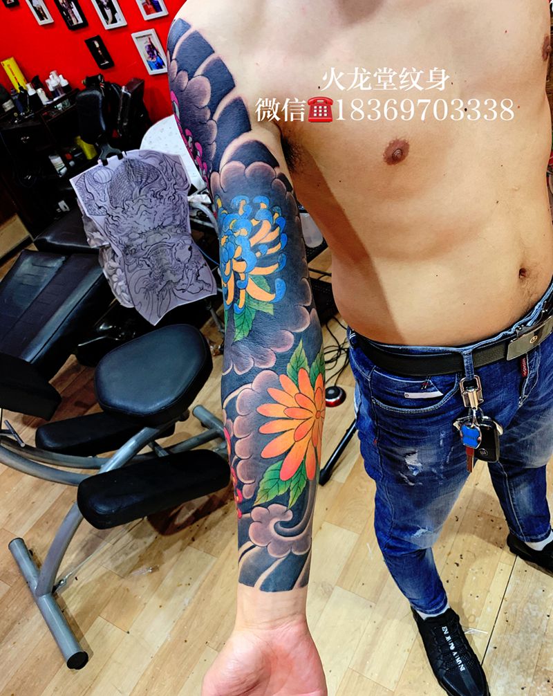 当前位置: 首页 >山东省济宁市纹身店-火龙堂纹身纹身图案>传统花臂纹身图片_手臂老传统纹身图案