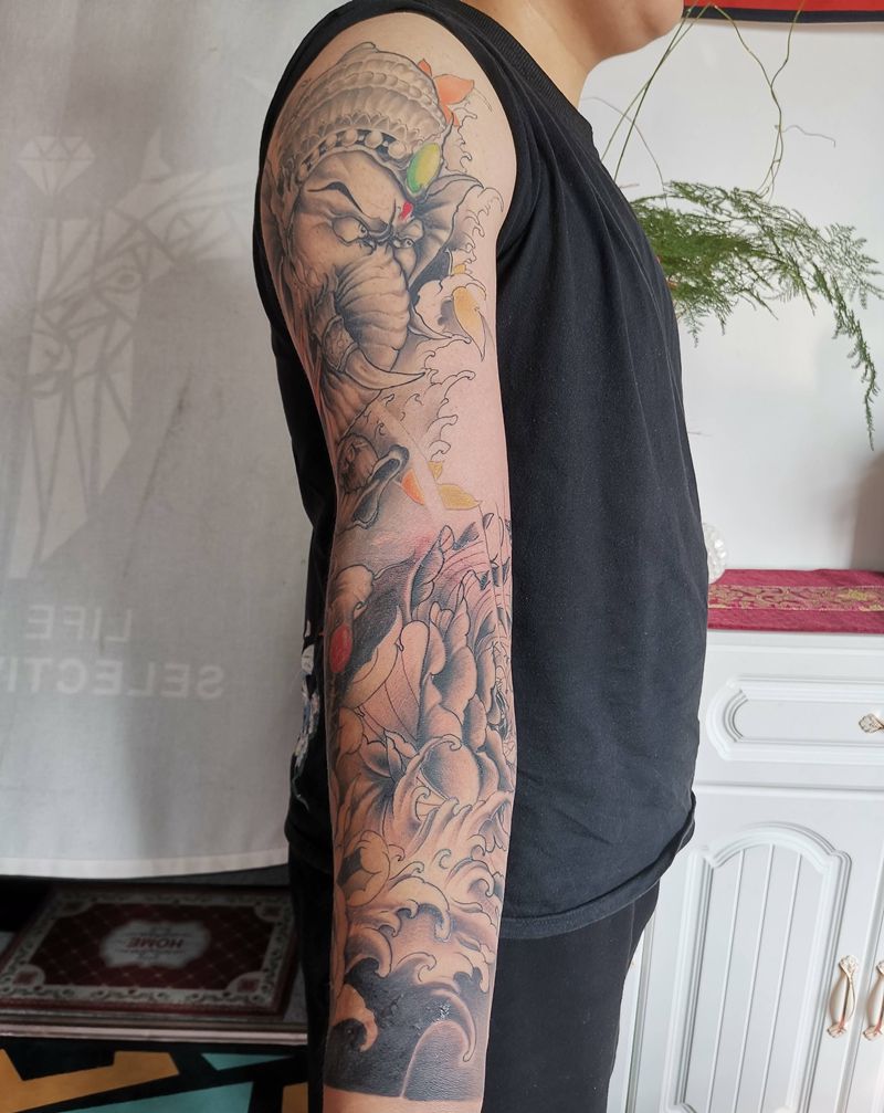当前位置: 首页 >山东省潍坊市纹身店-刺青部落纹身图案>象神花臂(包小臂)纹身图片_手臂鱼,牡丹纹身图案