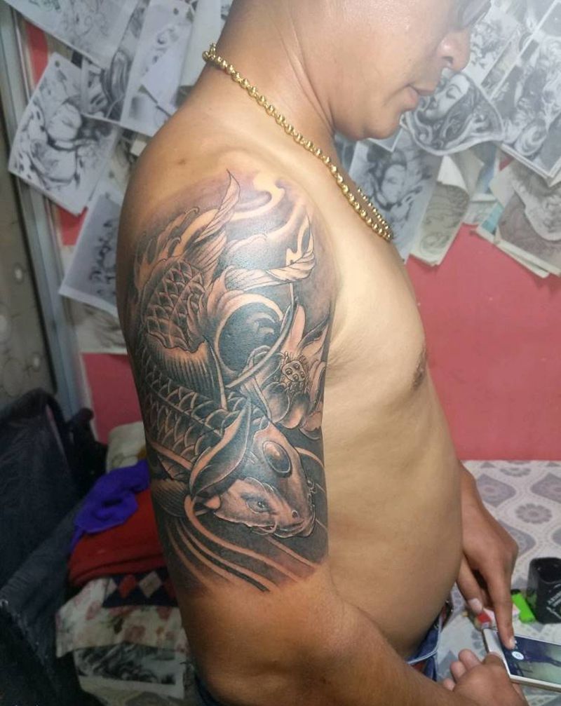 当前位置: 首页 >山东省泰安市纹身店-墨功刺青纹身图案>遮盖作品,鱼纹身图片
