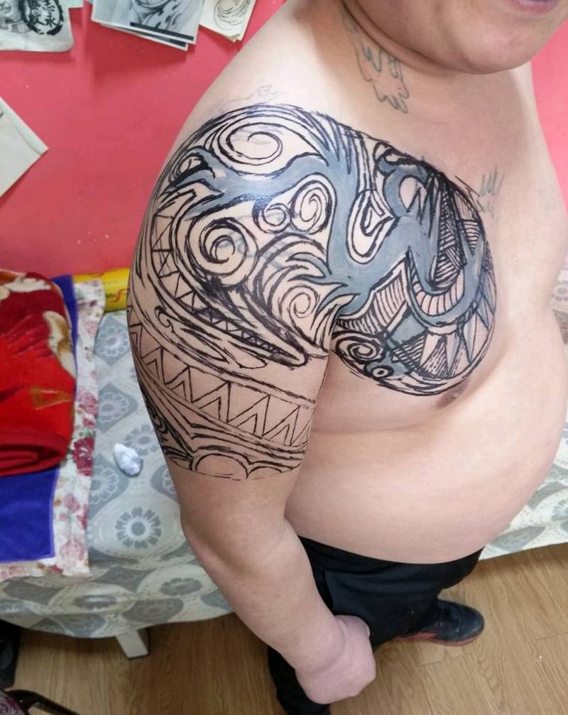 • 纹身吧推荐的披肩图腾半胛纹身图案作品展示