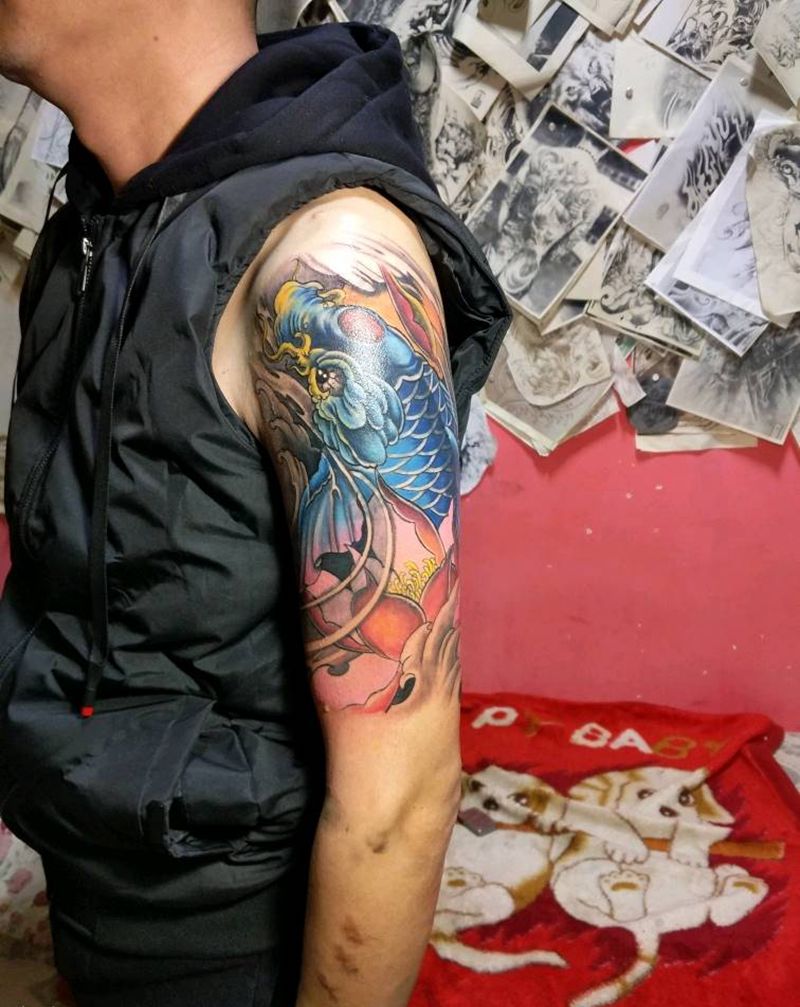 • T网红王老大花腿龙纹身图片_腿部新传统纹身图案