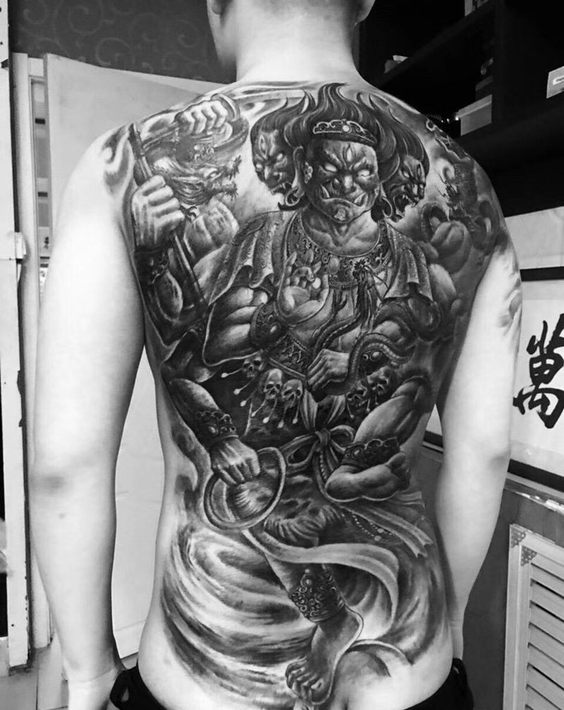 秽迹金刚纹身图片_背部传统人物纹身图案