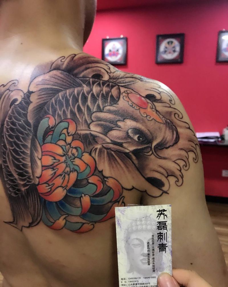 当前位置: 首页 >山东省泰安市纹身店-苏磊纹身纹身图案>鱼与菊纹身图片