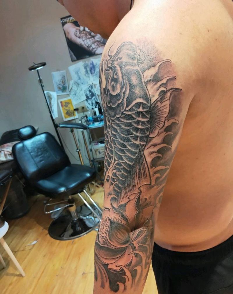 鲤鱼遮盖图腾纹身图片_手臂新传统纹身图案
