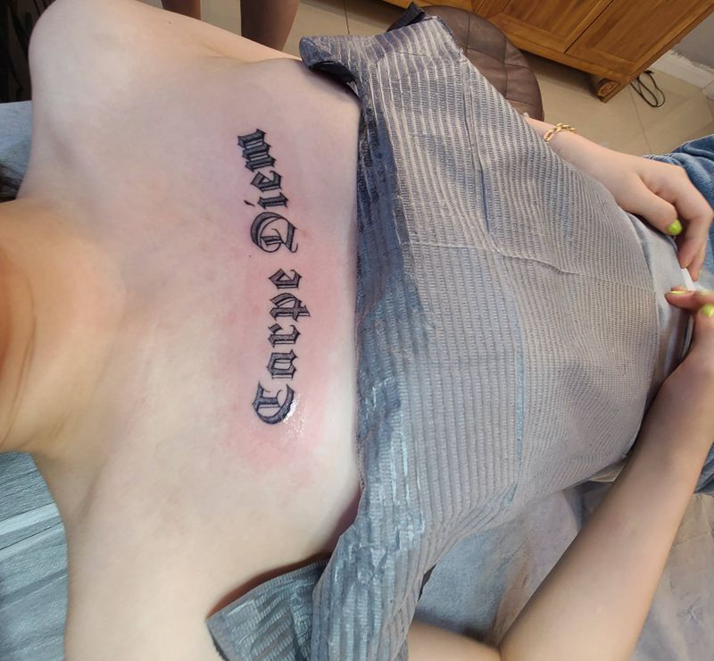当前位置: 首页 >山东省威海市纹身店-谛听刺青纹身图案>花体纹身图片_胸部肩部花体字纹身图案