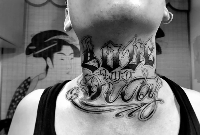 当前位置: 首页 >山东省威海市纹身店-谛听刺青纹身图案>原创其卡诺花体包脖子纹身图片_成品颈部欧美清新字符图腾原创线条纹身图案