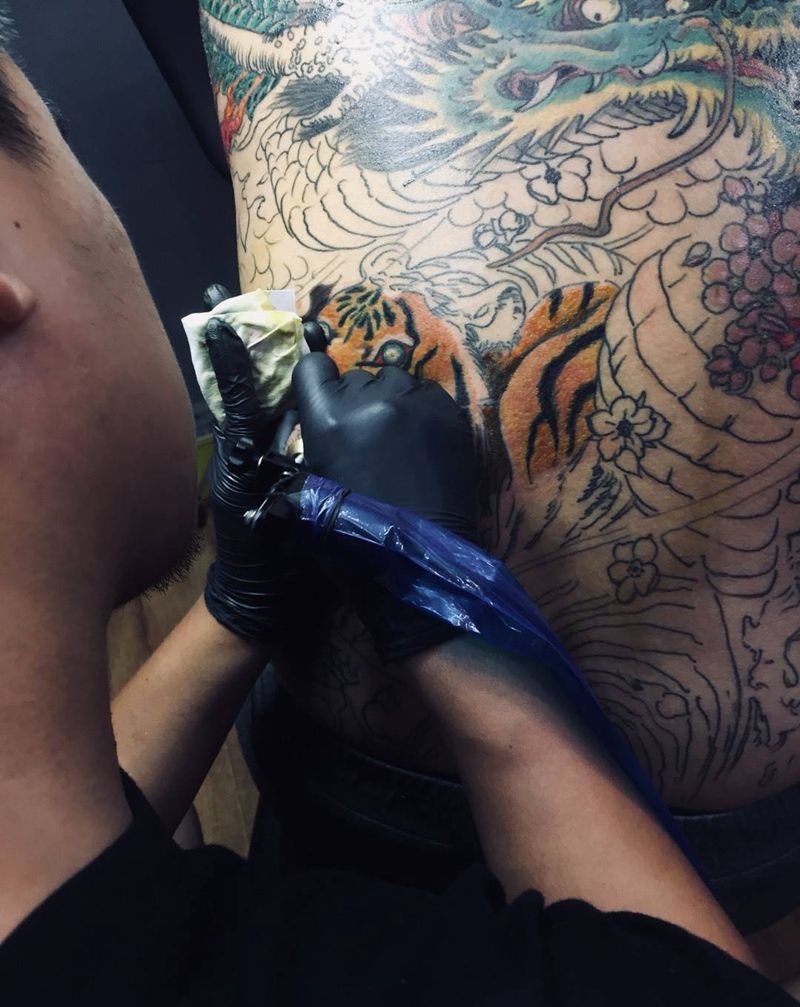 当前位置: 首页 >山东省威海市纹身店-鞭挞刺青纹身图案>彩背慢慢来纹身图片_成品背部传统动物纹身图案
