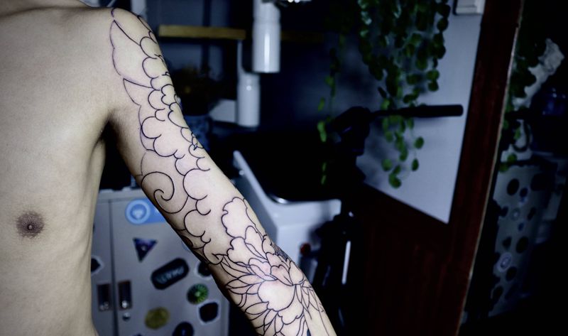 当前位置: 首页 >山东省日照市纹身店-赤焰阁纹身工作室纹身图案>牡丹七分袖纹身图片_手臂老传统牡丹纹身图案