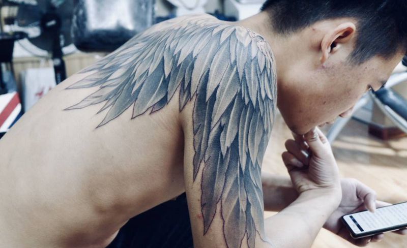 当前位置: 首页 >山东省日照市纹身店-赤焰阁纹身工作室纹身图案>翅膀纹身图片_背部欧美写实翅膀纹身图案