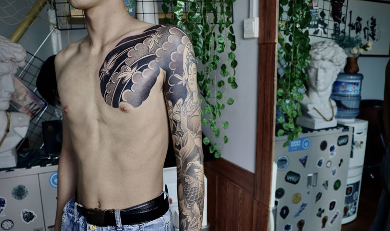 当前位置: 首页 >山东省日照市纹身店-赤焰阁纹身工作室纹身图案>花臂纹身图片_手臂老传统鲤鱼观音纹身图案