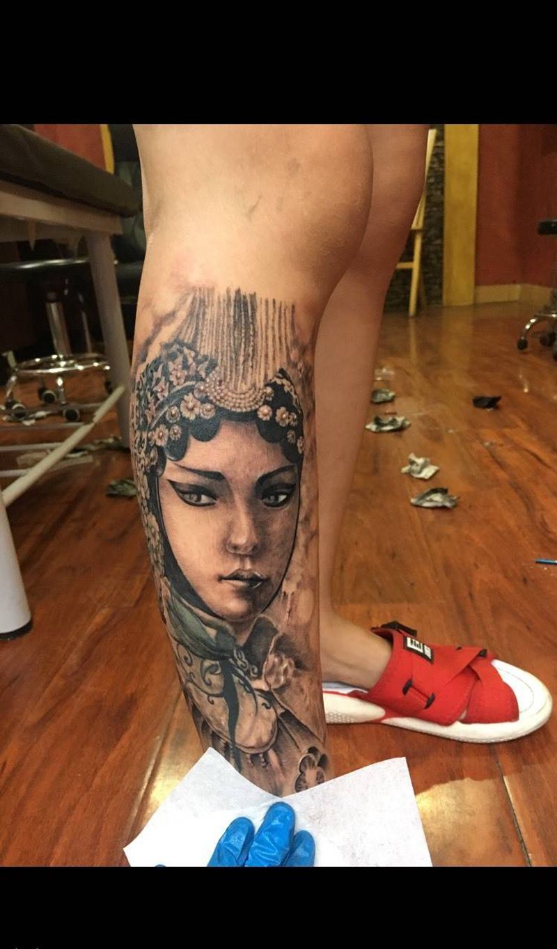 • T网红王老大花腿龙纹身图片_腿部新传统纹身图案