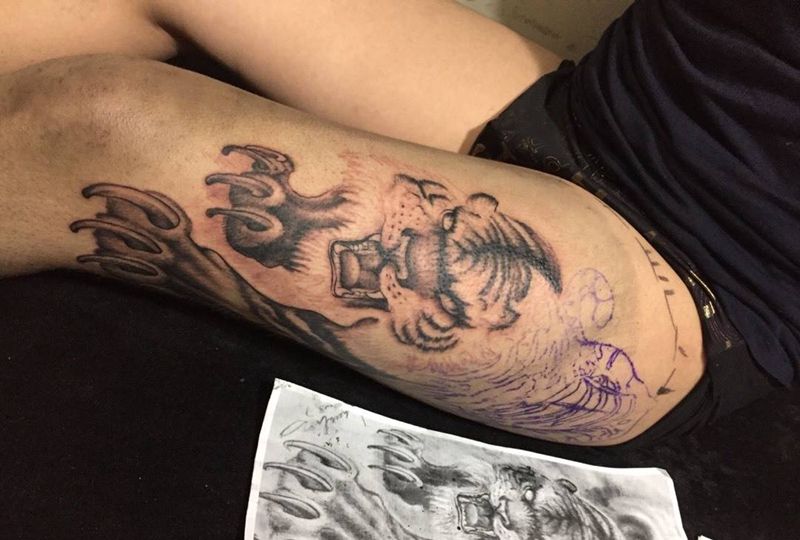 大老虎未完纹身图片