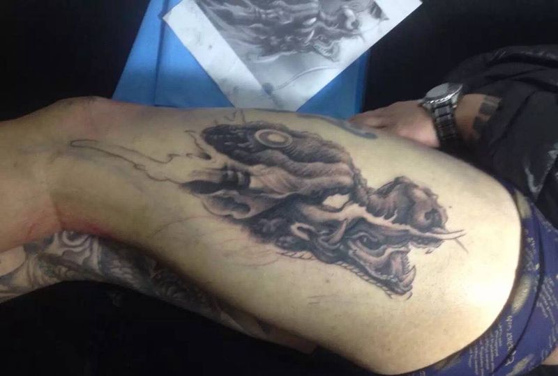 • T网红王老大花腿龙纹身图片_腿部新传统纹身图案