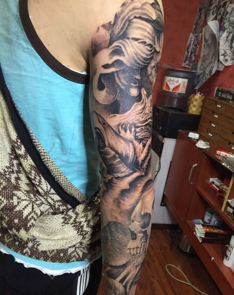 当前位置: 首页 >山东省临沂市纹身店-刺青堂纹身图案>花臂,图案都是客人得纹身图片