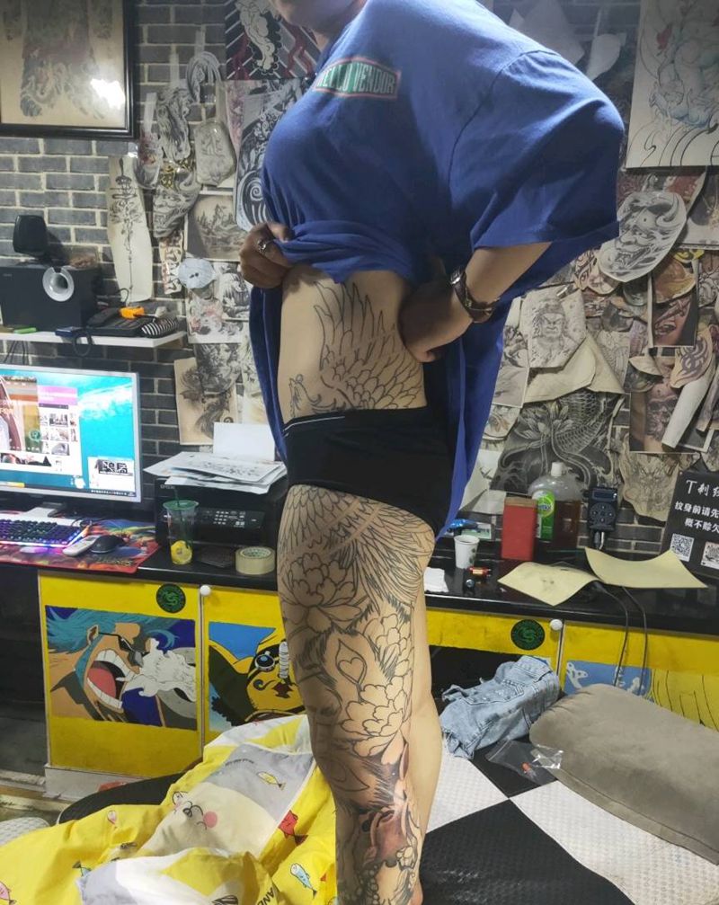 • T网红王老大花腿龙纹身图片_腿部新传统纹身图案