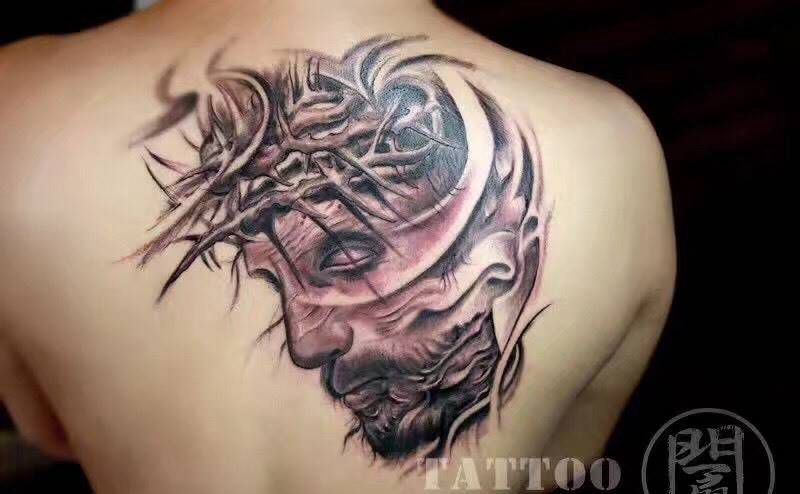黑灰满背纹身图案