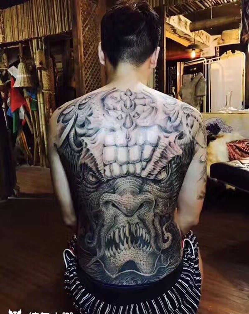 黑灰满背纹身图案