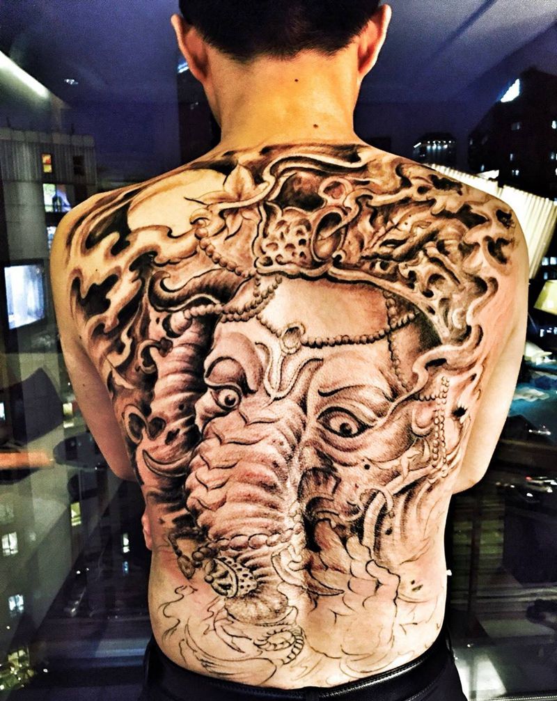 黑灰满背纹身图案