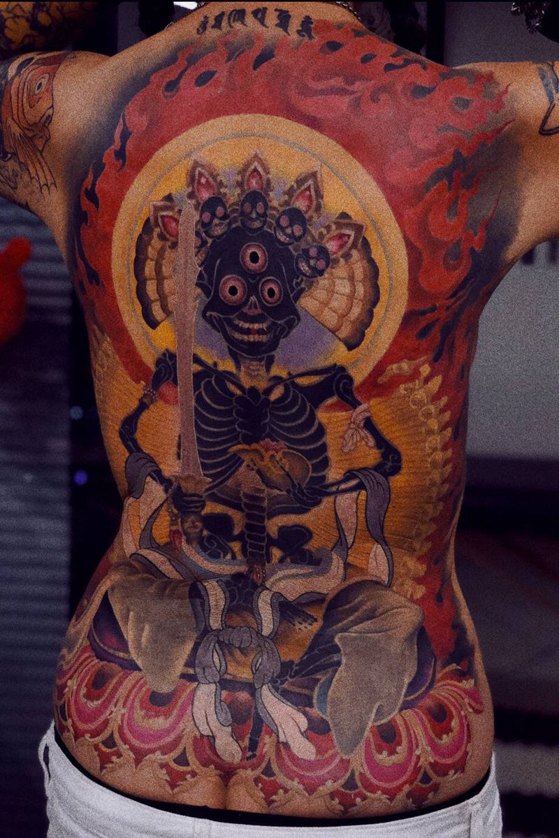 黑灰满背纹身图案