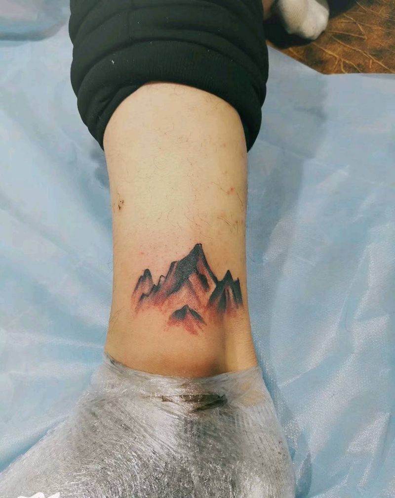 山水纹身图片_腿部新传统纹身图案