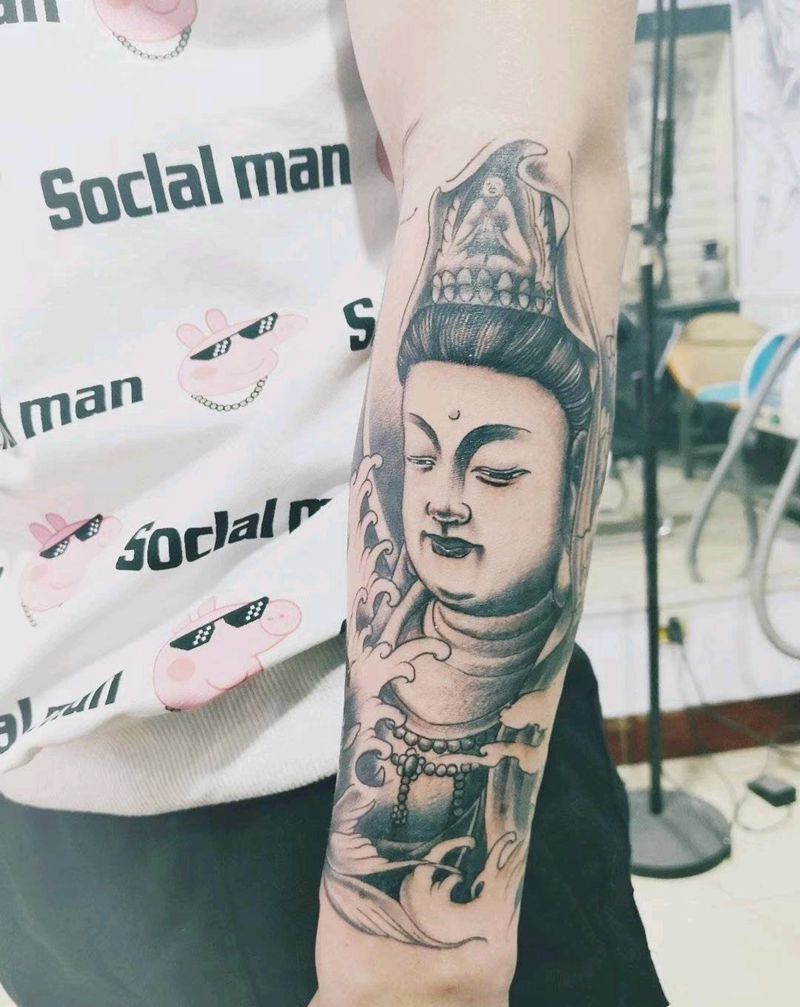 当前位置: 首页 >山东省德州市纹身店-锦绣堂专业纹身纹身图案>菩萨纹身图片_手臂新传统纹身图案
