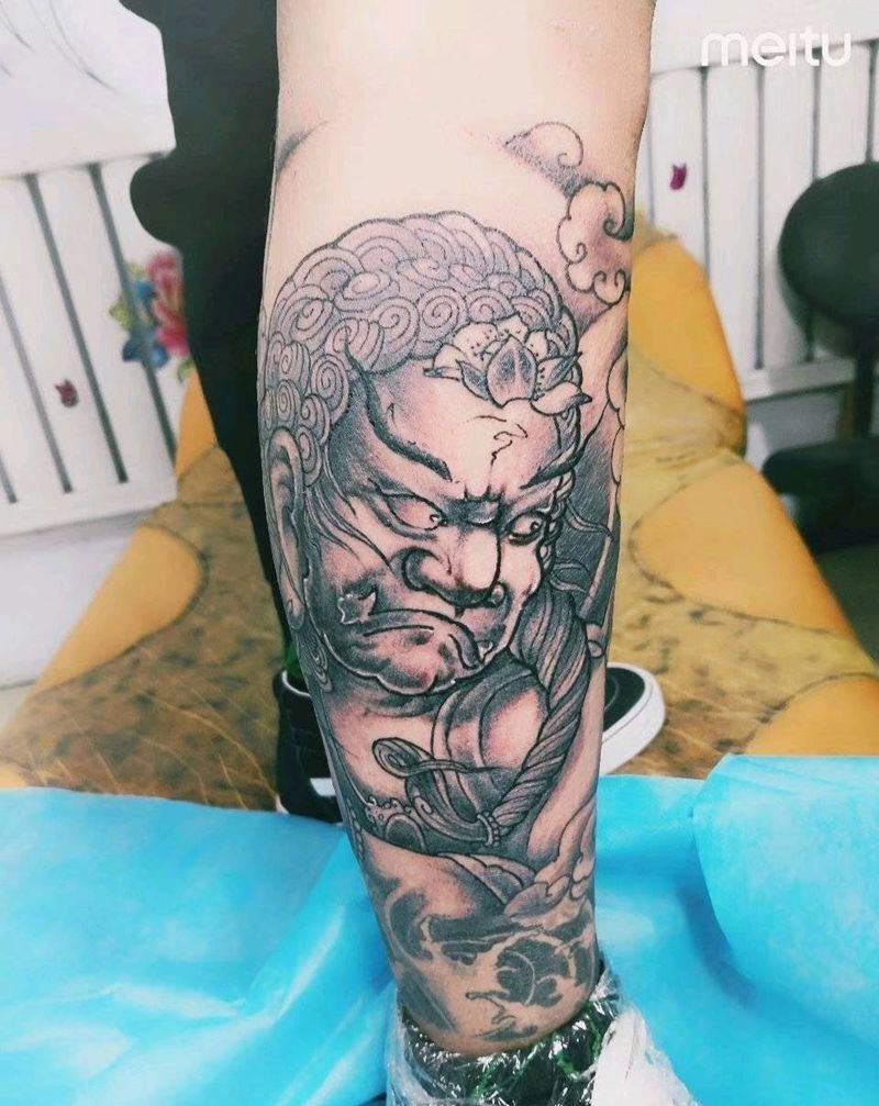 当前位置: 首页 >山东省德州市纹身店-锦绣堂专业纹身纹身图案>不动冥王纹身图片_腿部新传统纹身图案