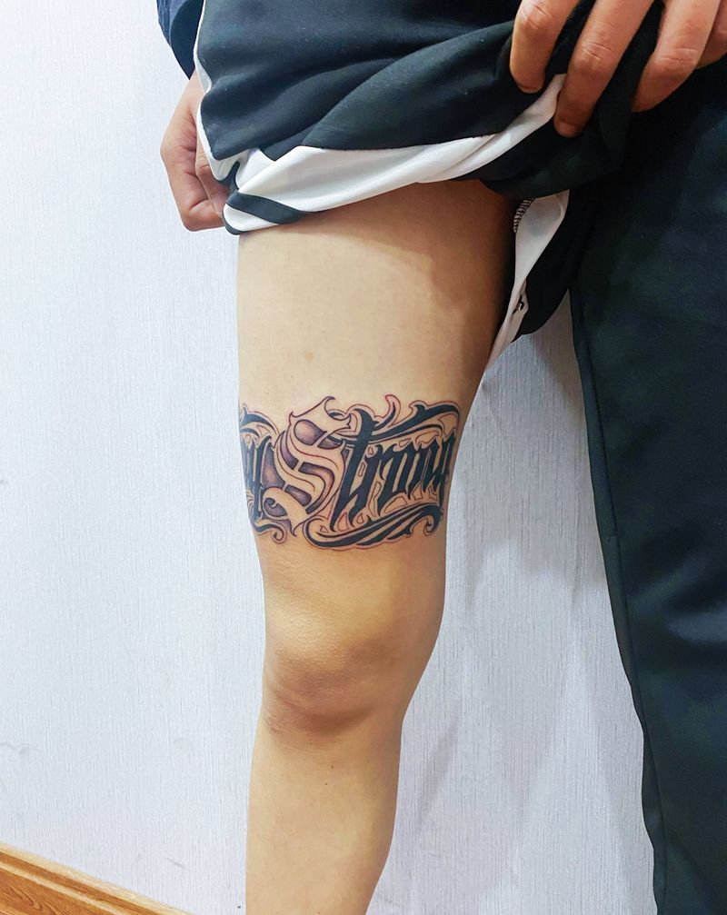 当前位置: 首页 >山东省聊城市纹身店-聊城刺客纹身工作室纹身图案>花体字纹身图片_腿部纹身图案