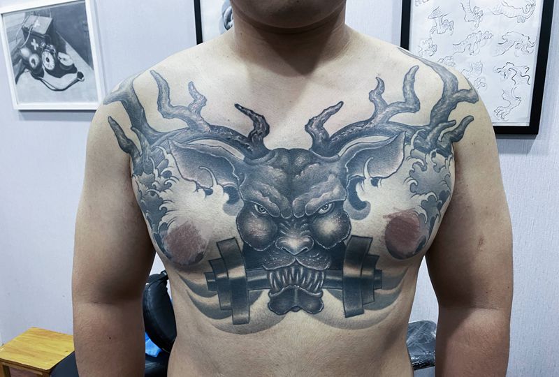 当前位置: 首页 >山东省聊城市纹身店-聊城刺客纹身工作室纹身图案>大块头纹身图片_胸部纹身图案