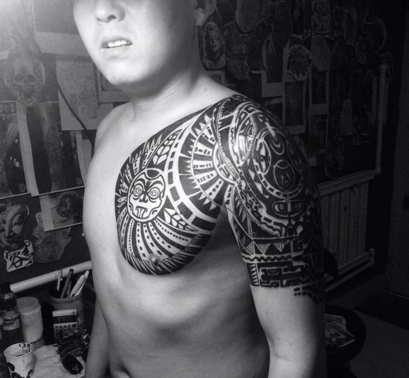 • 纹身吧推荐的披肩图腾半胛纹身图案作品展示
