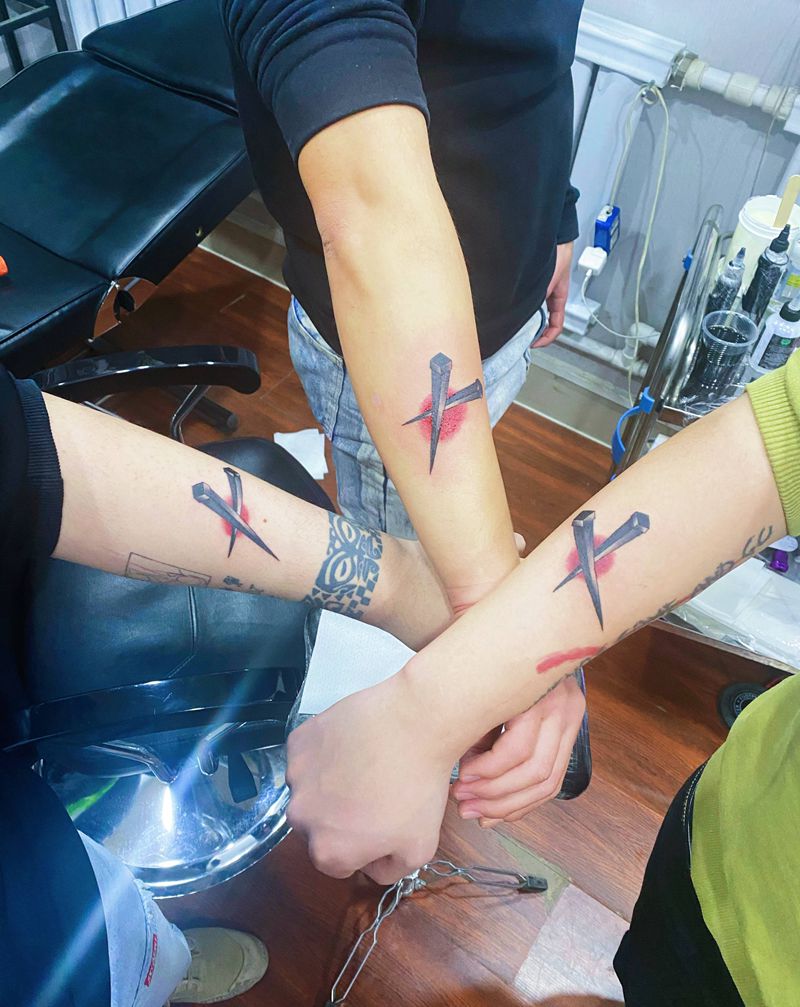 当前位置: 首页 >山东省聊城市纹身店-聊城刺客纹身工作室纹身图案>几个洋钉子纹身图片_手臂纹身图案
