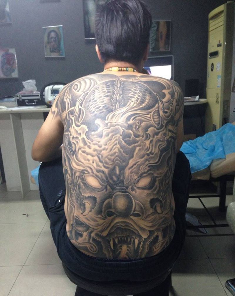 • T云龙九郎纹身图片_背部老传统云龙九郎纹身图案