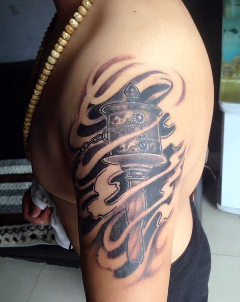 当前位置: 首页 >山东省聊城市纹身店-聊城刺客纹身工作室纹身图案>转经轮纹身图片