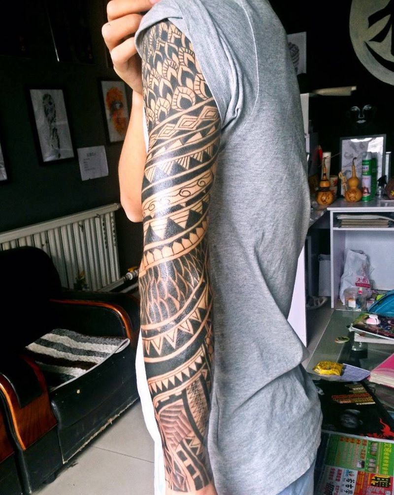 当前位置: 首页 >山东省聊城市纹身店-聊城刺客纹身工作室纹身图案>图腾花臂纹身图片