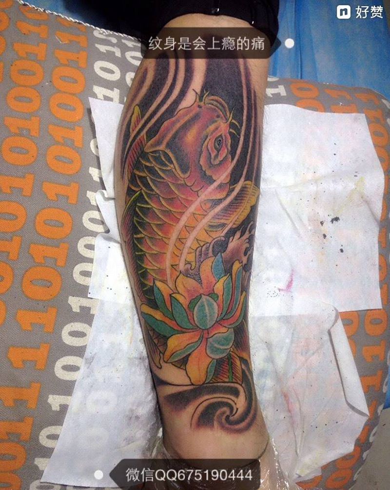 • T网红王老大花腿龙纹身图片_腿部新传统纹身图案