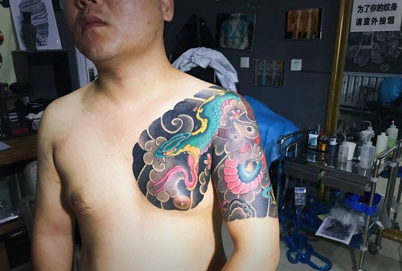 当前位置: 首页 >山东省聊城市纹身店-聊城刺客纹身工作室纹身图案>传统半甲纹身图片