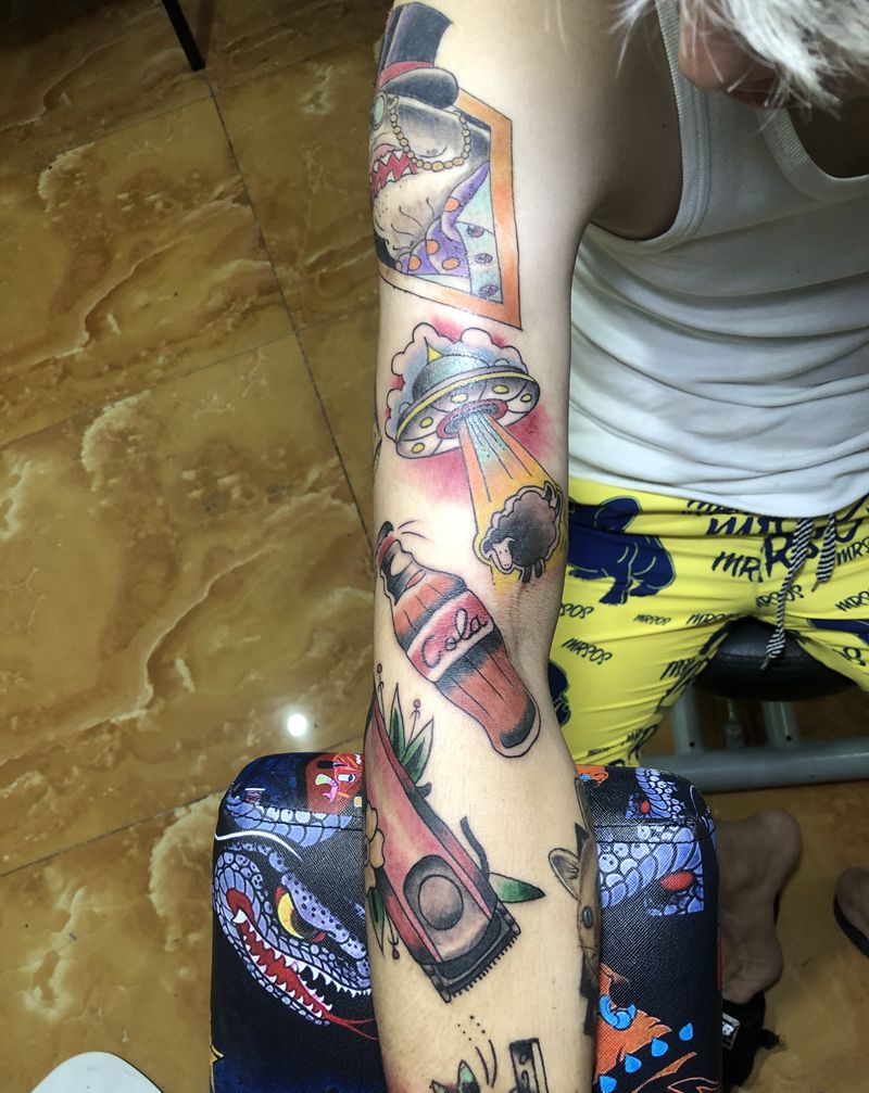 当前位置: 首页 >山东省滨州市纹身店-鹤·刺青纹身图案>拼接花臂纹身图片_手臂纹身图案