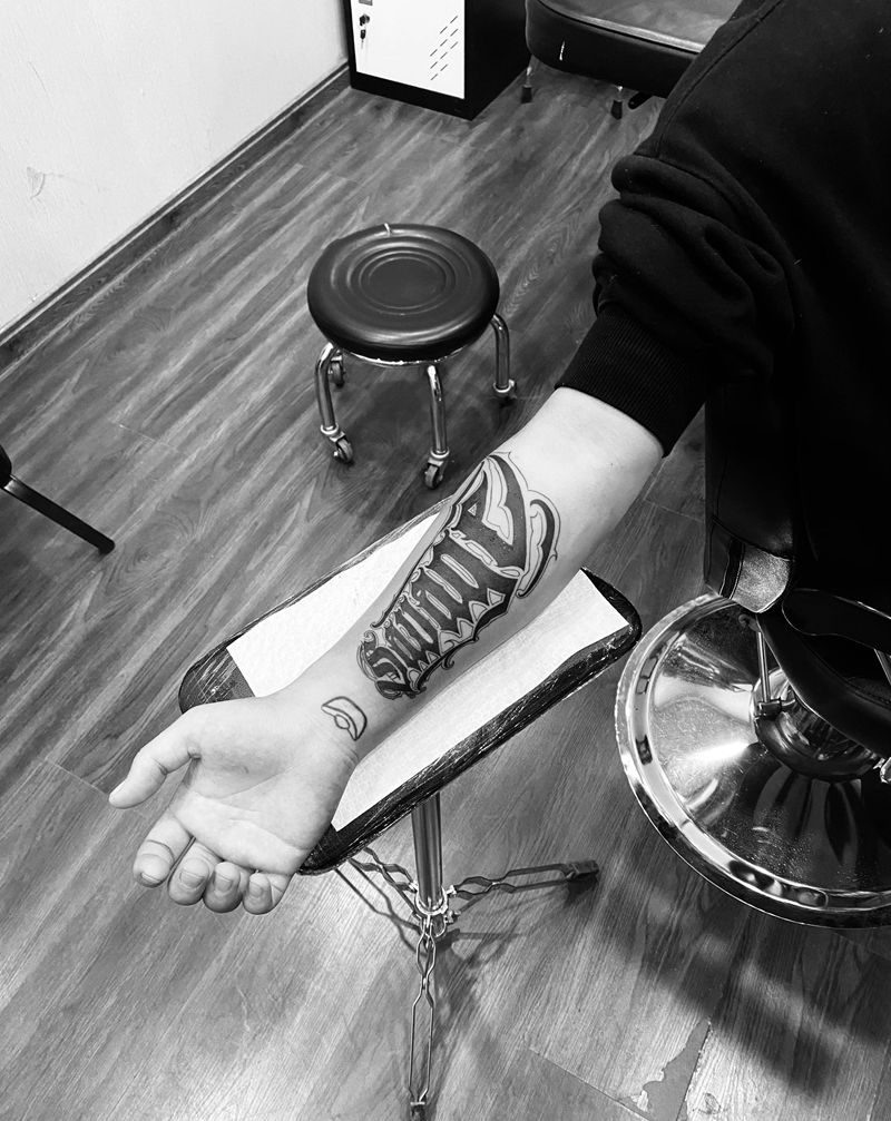 当前位置: 首页 >山东省聊城市纹身店-聊城刺客纹身工作室纹身图案>花体纹身图片_手臂纹身图案