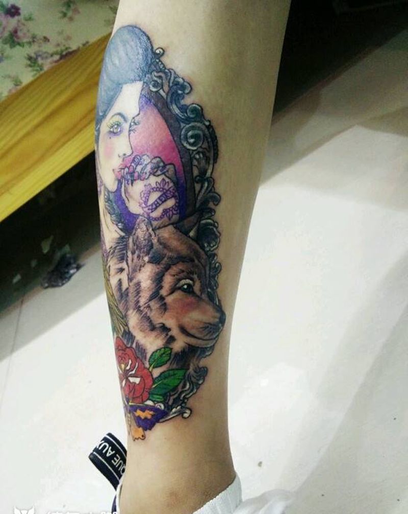 • T网红王老大花腿龙纹身图片_腿部新传统纹身图案
