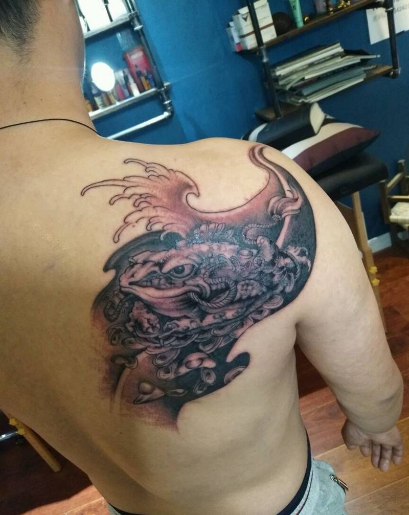当前位置: 首页 >山东省德州市纹身店-一帆纹身工作室纹身图案>聚财金蟾纹身图片